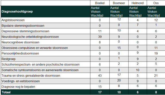 Hieronder ziet u een overzicht van de gemiddelde wachttijden (gebaseerd op gegevens van de afgelopen maanden). Omdat het gemiddelde wachttijden zijn, kan voor u persoonlijk de wachttijd anders zijn.