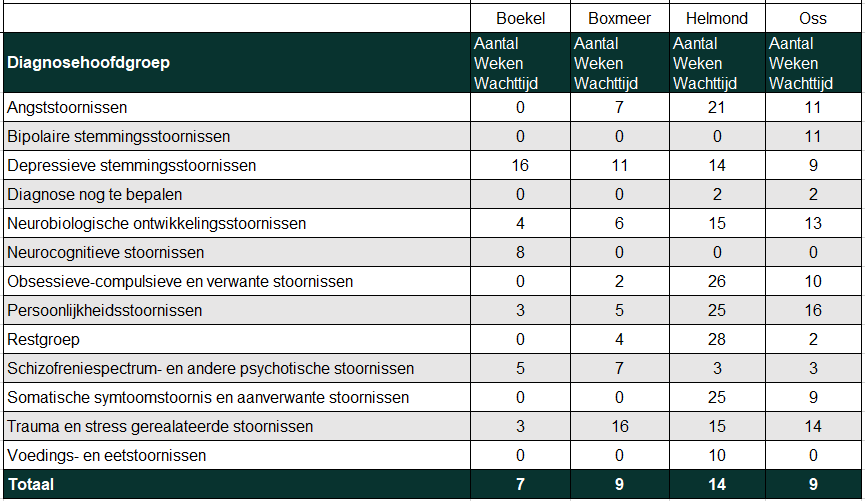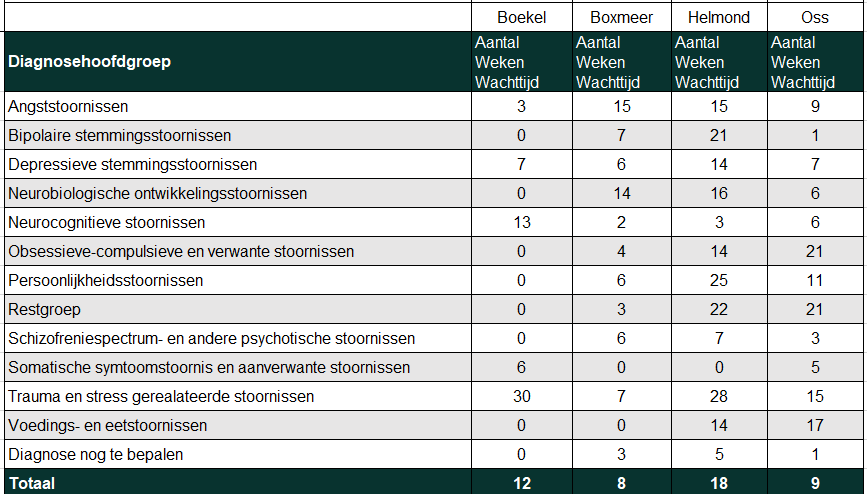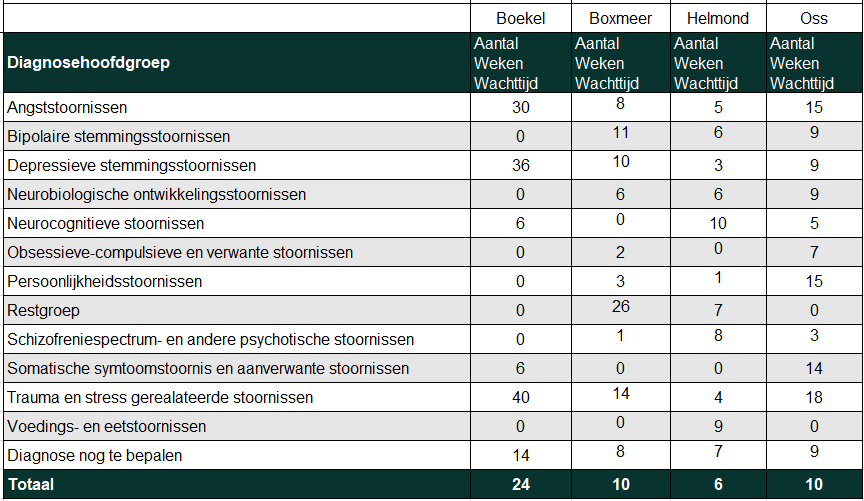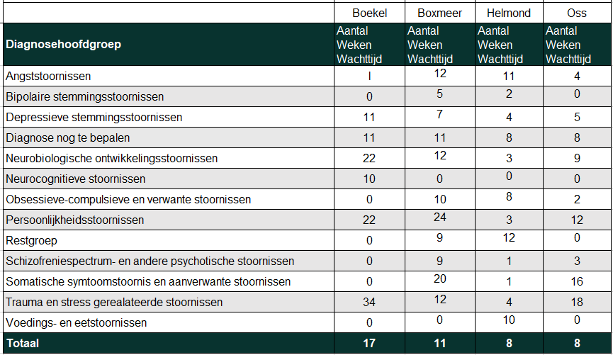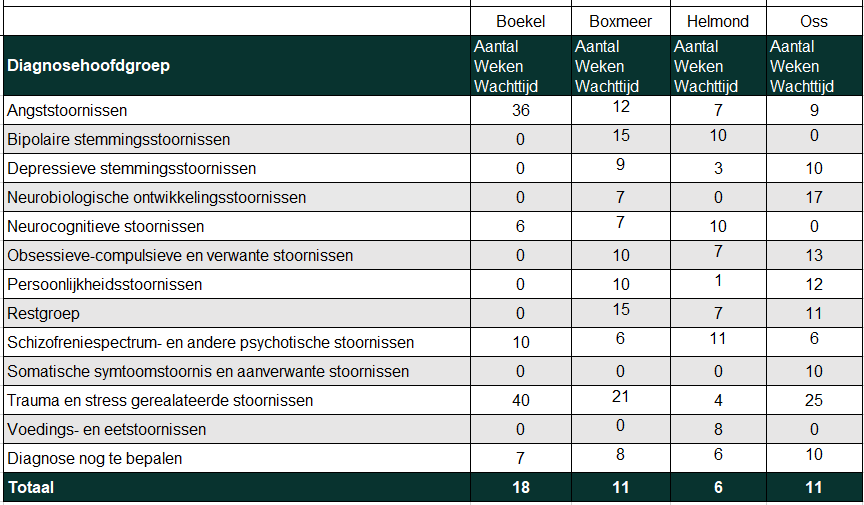 Behandelwachttijd: Het aantal weken tussen het intakegesprek en de start van de behandeling.