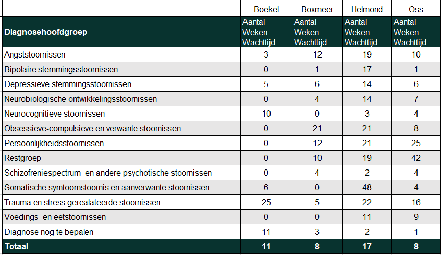 Behandelwachttijd: Het aantal weken tussen het intakegesprek en de start van de behandeling.